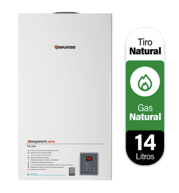 Calefont modulante Splendid de tiro Natural con tecnología modulante Templatech que ahorra hasta un 30% de gas. Eficiencia y seguridad con 70 años de respaldo.